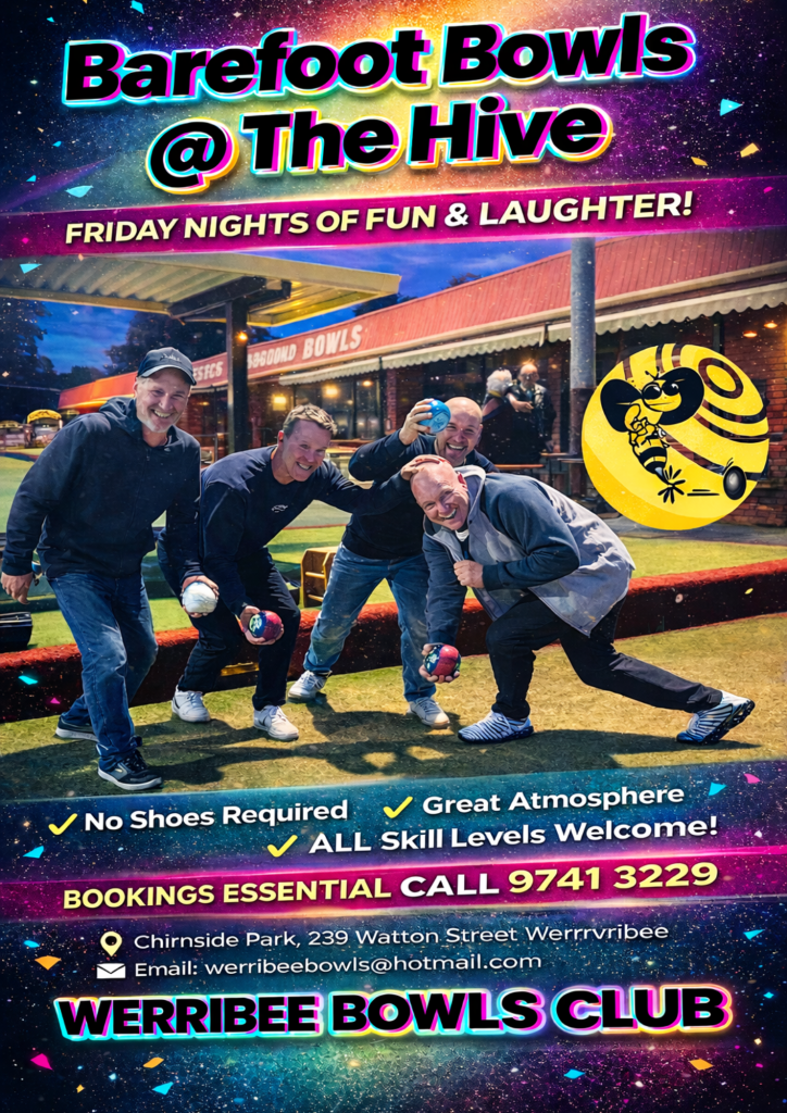 barefoot bowls, bowls, Community Bowls, Families, Healthy & Active, socialBarefoot Bowls @ The Hive Share this: Share on X (Opens in new window) X Share on Facebook (Opens in new window) Facebook Like Loading... Related Published by Werribee Bowls Club View all posts by Werribee Bowls Club